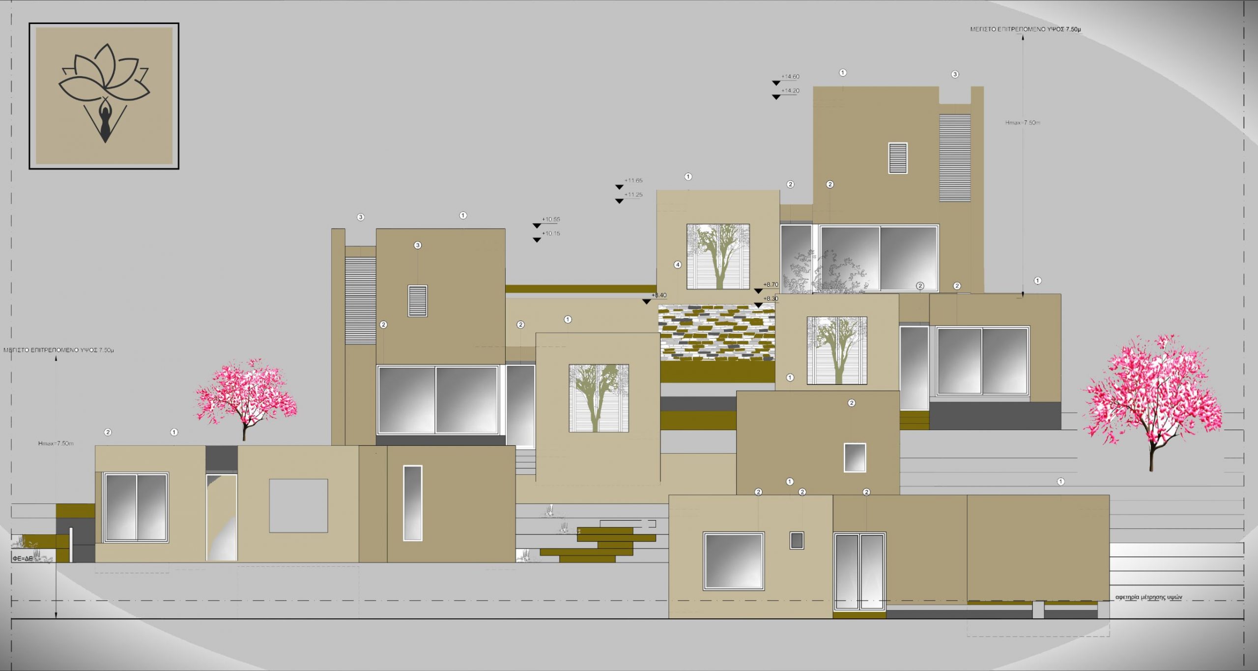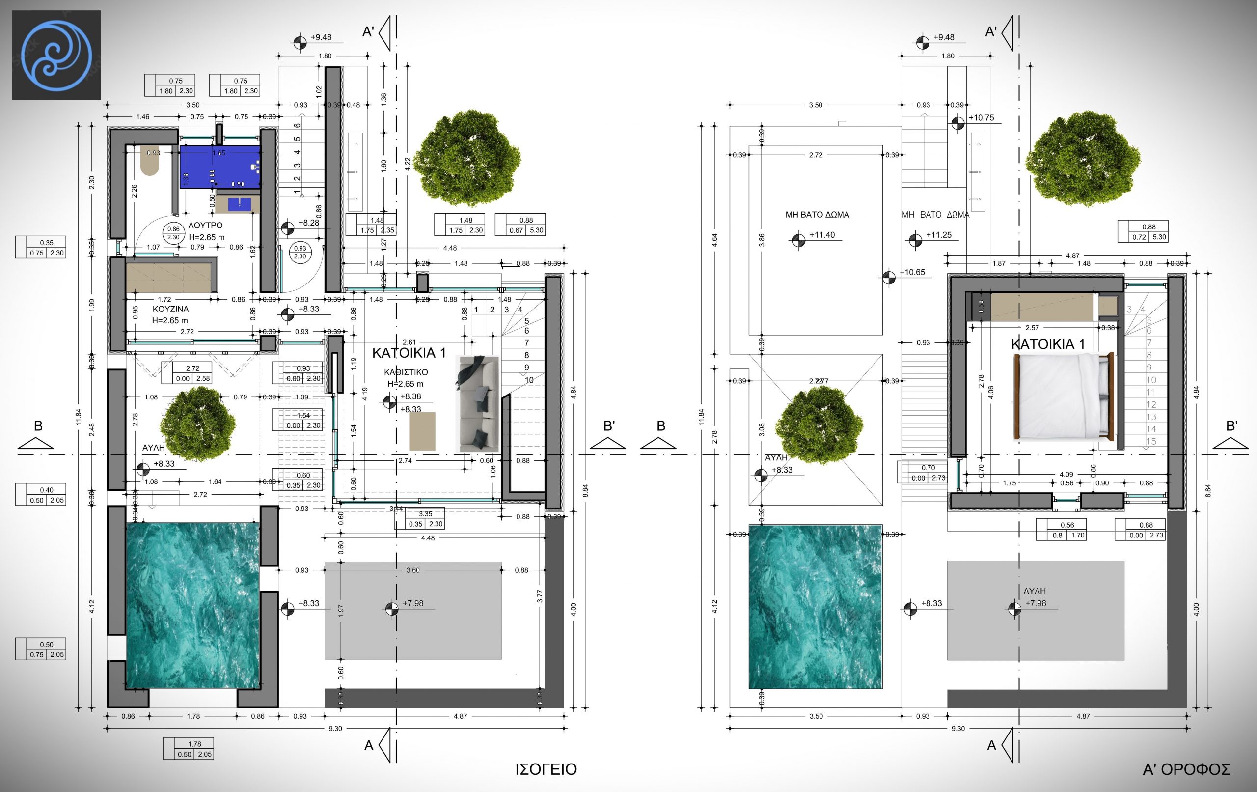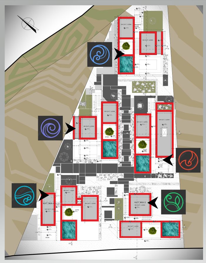 Έχει σχεδιαστεί με τρόπο ώστε η ιδιωτικότητα να έχει το πρωτεύων ρόλο εσωτερικά αλλα και εξωτερικά προς την εσωτερική πισίνα.