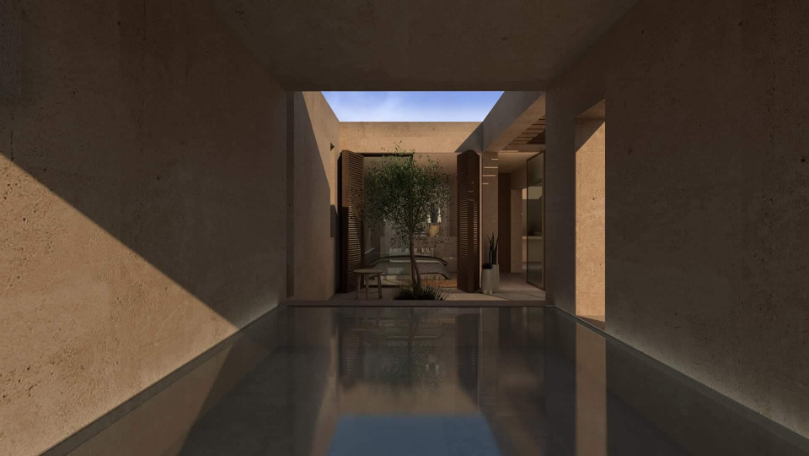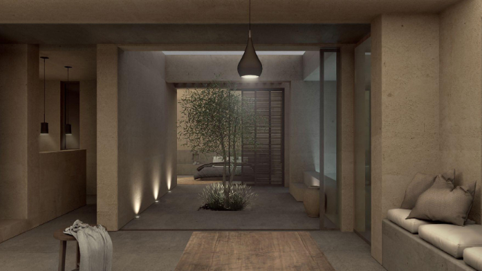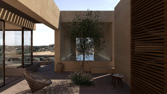 Έχει σχεδιαστεί με τρόπο ώστε η ιδιωτικότητα να έχει το πρωτεύων ρόλο εσωτερικά αλλα και εξωτερικά προς την εσωτερική πισίνα.